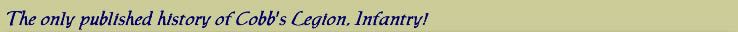 A day-by-day account of Cobb's Legion, Infantry Battalion's Confederate Army Service from July, 1861 to April, 1865 at Appomattox. The book chronicles the Legion's travels, routes and miles it marched each day; camp locations and names of their camps; engagements and the units opposing them; killed, wounded and captured in each engagement and deaths due to disease; command assignments; organization structure; company rosters and much more information regarding the unit and its members. |